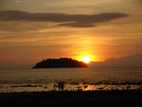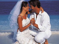Bright beach wedding theme includes such items as exotic tropical flowers in your bouquets, elegant white beach wedding dress, traditional Black Rum Wedding Cake and celebration till late night.